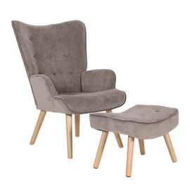 ALMA Πολυθρόνα - Μπερζέρα με Σκαμπό - Υποπόδιο Φυσικό Ύφασμα Velure Καφέ-Ε7141,8-Ύφασμα-1τμχ- 69x76x97cm / 52x38x35cm