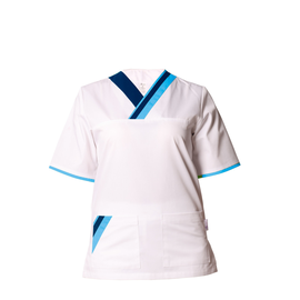 Mironia Blue . Γυναικεία μπλούζα με κλείσιμο κρυφό τρουκ και διακοσμητικό κουμπί. Κατάλληλο για χώρο ιατρικής, αισθητικής. Με δύο μπροστινές τσέπες. Με κοντράστ γαλάζιες λεπτομέρειες. Σε ποπλίνα 65%πολυέστερ 35%βισκόζη 140 gr / m 2, μαλακής αφής, ανεξίτηλη, κατάλληλη για πλύσιμο σε υψηλές...