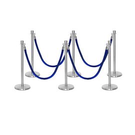 Σετ με 6 διαχωριστικά κολωνάκια ασημί με κορώνα στην κορυφή και 4 μπλε βελούδινα σχοινιά 1.5m