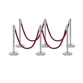 Σετ με 6 διαχωριστικά κολωνάκια ασημί με κορώνα στην κορυφή και 4 κόκκινα βελούδινα σχοινιά 1.5m