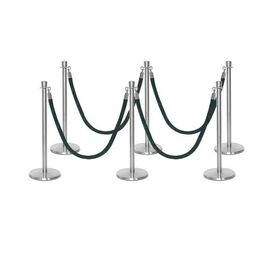 Σετ με 6 διαχωριστικά κολωνάκια ασημί με κορώνα στην κορυφή και 4 πράσινα βελούδινα σχοινιά 1.5m