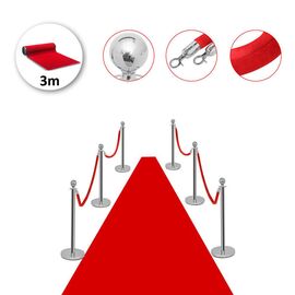 Σετ με 6 διαχωριστικά κολωνάκια ασημί με σφαίρα στην κορυφή, 4 κόκκινα βελούδινα σχοινιά 1.5m και 1 κόκκινο χαλί 3m