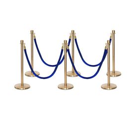 Σετ με 6 διαχωριστικά κολωνάκια χρυσά με κορώνα στην κορυφή και 4 μπλε βελούδινα σχοινιά 1.5m