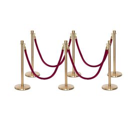 Σετ με 6 διαχωριστικά κολωνάκια χρυσά με κορώνα στην κορυφή και 4 κόκκινα βελούδινα σχοινιά 1.5m
