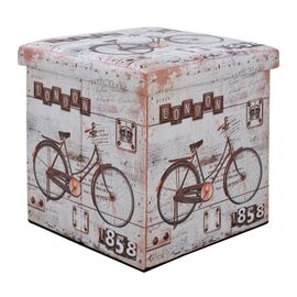 Στολίστε το χώρο και κρύψτε τα πράγματα που δεν θέλετε να φαίνονται με ένα πολύ όμορφο τρόπο. Σκαμπώ πτυσσόμενο με αποθηκευτικό χώρο επενδυμένο με τεχνόδερμα. Σχέδιο: Bike Διαστάσεις: 38x38x38 εκ.