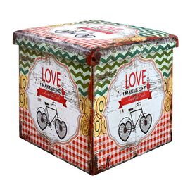 Στολίστε το χώρο και κρύψτε τα πράγματα που δεν θέλετε να φαίνονται μέ ένα πολύ όμορφο τρόπο. Σκαμπώ πτυσσόμενο με αποθηκευτικό χώρο επενδυμένο με τεχνόδερμα με σχέδιο Love. Διαστάσεις:38x38x38 εκ.