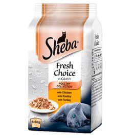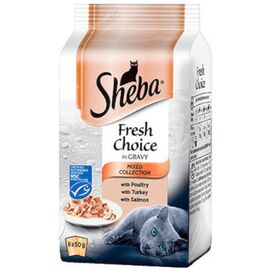 Sheba Mini Fresh Mixed Γαλοπούλα / Κοτόπουλο / Σολομός Gravy 50gr 6τμχ