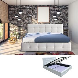 Ε8053Α,1 FIDEL Κρεβάτι (για στρώμα 160x200cm) Pu Άσπρο/Αποθ.Χώρος Προέλευση : P.R.C.