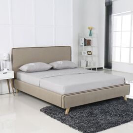 MORISSON Κρεβάτι Διπλό, για Στρώμα 160x200cm, Ύφασμα Απόχρωση Dark Beige-Ε8078,2-Ύφασμα-1τμχ- 171x216x110cm