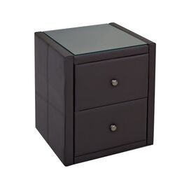 WILTON Κομοδίνο PU Σκούρο Καφέ με Προστατευτικό Γυαλί Επιφάνειας-Ε8057,G-PU - PVC - Bonded Leather-1τμχ- 46x41x57cm