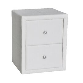 Κομοδίνο Elda επενδεδυμένο από τεχνόδερμα, σε λευκή απόχρωση. Το τεχνόδερμα σε λευκή απόχρωση, αποτελεί μια διαχρονική λύση στην διακόσμηση της κρεβατοκάμαρας σας. Το κομοδίνο διαθέτει 2 συρτάρια αποθήκευσης. Διαστάσεις: 45x39x45Υ εκ.