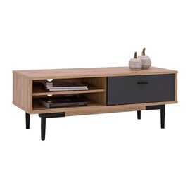 Μοντέρνο έπιπλο τηλεόρασης από τη σειρά MARGARIT κατασκευασμένο από μελαμίνη σε φυσική απόχρωση, με μεταλλικά πόδια σε γκρι απόχρωση. Διαθέτει ένα ντουλάπι με συρόμμενη πόρτα και δύο ράφια για να αποθηκεύετε ό,τι χρειάζεστε. Ανανεώστε τον χώρο σας δίνοντας μια μοντέρνα αισθητική! Διαστάσεις:...