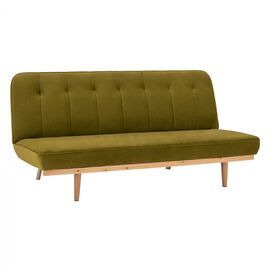 Μοντέρνος καναπές κρεβάτι με επένδυση από βελούδινο ύφασμα σε λαδί απόχρωση. Τα πόδια του καναπέ είναι μεταλλικά και βαμμένα έτσι ώστε να αποδίδουν το φυσικό χρώμα του ξύλου. Επίσης η πλάτη του, έχει την δυνατότητα να πέφτει πίσω και να μετατρέπεται εύκολα σε ένα άνετο κρεβάτι. Ένα άγγιγμα...