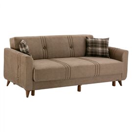Καναπές που μετατρέπεται εύκολα σε κρεβάτι και προσφέρει λειτουργικότητα που είναι απαραίτητη για κάθε σπίτι. Καναπές τριθέσιος με επένδυση από μπεζ ύφασμα σε μοντέρνο στιλ, όμορφος και πολύ βολικός. Ο καναπές διαθέτει ένα άνετο αποθηκευτικό χώρο με χώρισμα στην μέση και δύο διακοσμητικά...