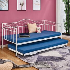 Καναπές - κρεβάτι με extra βοηθητικό κρεβάτι κατασκευασμένο από μεταλλικό σκελετό σε λευκή απόχρωση, στιβαρής κατασκευής. Ένας ιδανικός συνδυασμός καναπέ που μπορεί να γίνει και κρεβάτι σε πραγματικά ασυναγώνιστη τιμή. Εξωτερικές Διαστάσεις κρεβατιού: 190x90x93Υ εκ. Διαστάσεις στρώματος:...