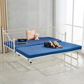 Καναπές - κρεβάτι με extra βοηθητικό κρεβάτι κατασκευασμένο από μεταλλικό σκελετό σε λευκή απόχρωση, στιβαρής κατασκευής. Ένας ιδανικός συνδυασμός καναπέ που μπορεί να γίνει και κρεβάτι σε πραγματικά ασυναγώνιστη τιμή. Εξωτερικές Διαστάσεις κρεβατιού: 197x97x93Υ εκ. Διαστάσεις στρώματος:...