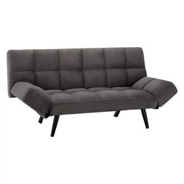 Μοντέρνος καναπές-κρεβάτι με επένδυση από ύφασμα σε γκρι απόχρωση με μαύρο ρέλι περιμετρικά του καναπέ και διακοσμητικά κουμπιά στην πλάτη αλλά και στο κάθισμα. Τα πόδια του καναπέ είναι από ξύλο σε φυσική απόχρωση, επίσης η πλάτη του, έχει την δυνατότητα να πέφτει πίσω και να μετατρέπεται εύκολα...