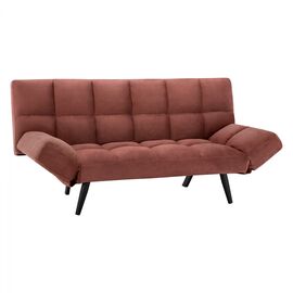 Μοντέρνος καναπές κρεβάτι με αναδιπλούμενα μπράτσα και επένδυση από βελούδινο ύφασμα σε απόχρωση σάπιου μήλου. Τα πόδια του καναπέ είναι μεταλλικά σε μαύρη απόχρωση και τα αναδιπλούμενα μπράτσα ρυθμίζονται σαν μαξιλάρια σε διάφορες θέσεις. Επίσης η πλάτη του, έχει την δυνατότητα να πέφτει πίσω...