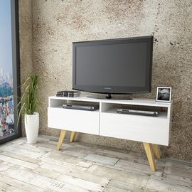 Μοντέρνο έπιπλο τηλεόρασης, κατασκευασμένο από ανθεκτική μελαμίνη υψηλής ποιότητας σε λευκή απόχρωση. Τα πόδια είναι από ξύλο σε φυσική απόχρωση. Μοντέρνος σχεδιασμός και ανθεκτικά υλικά, διαθέτει 2 ανοικτούς αποθηκευτικούς χώρους και 2 ντουλάπια στο κάτω μέρος ως χώρο αποθήκευσης. Ανανεώστε τον...