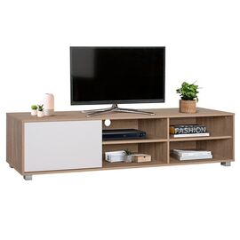 Μοντέρνο έπιπλο τηλεόρασης, σε απόχρωση Sonama-Λευκό. Κατασκευασμένο από μελαμίνη, με ένα ντουλάπι και με ειδικά διαμορφωμένα ράφια για να τοποθετούνται ηλεκτρονικές συσκευές ή διακοσμητικά. Διαστάσεις: 180x40x41Y εκ. Παρατηρήσεις: 1)Το έπιπλο τηλεόρασης διατίθεται σε πακέτο αμοντάριστο με...
