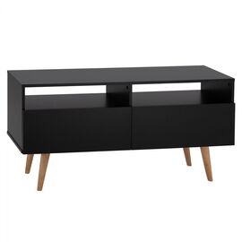Μοντέρνο έπιπλο τηλεόρασης, κατασκευασμένο από ανθεκτική μελαμίνη υψηλής ποιότητας σε μαύρη απόχρωση. Τα πόδια είναι από ξύλο σε φυσική απόχρωση. Μοντέρνος σχεδιασμός και ανθεκτικά υλικά, διαθέτει 2 ανοικτούς αποθηκευτικούς χώρους και 2 ντουλάπια στο κάτω μέρος ως χώρο αποθήκευσης. Ανανεώστε τον...