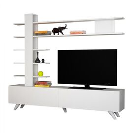 Σύνθεση τηλεόρασης σε μοντέρνο αλλά και λιτό σχεδιασμό, κατασκευασμένο από ανθεκτική μελαμίνη υψηλής ποιότητας σε λευκή απόχρωση. Η μονάδα τηλεόρασης, διαθέτει δύο ανοιχτούς αποθηκευτικούς χώρους. Διαθέτει ένα ράφι τοίχου, και δύο βιβλιοθήκες με πέντε επιφάνειές τοποθέτησης αντικειμένων. Ο...