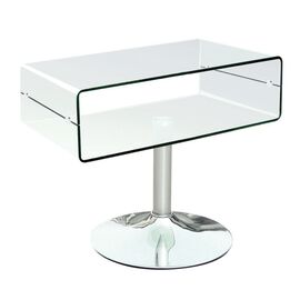 GLASSER Clear TV Τραπεζάκι Χρώμιο, Διάφανο Γυαλί 12mm-ΕΜ739-Bent Glass/Μέταλλο-1τμχ- 60x38x46cm