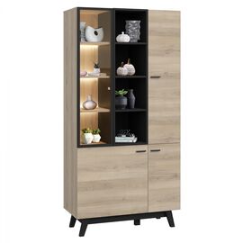 Βιτρίνα ραφιέρα με ενσωματωμένο φωτισμό LED, σε μοντέρνο αλλά και λιτό σχεδιασμό, κατασκευασμένο από ανθεκτική μελαμίνη υψηλής ποιότητας, σε όμορφη διχρωμία από φυσική και μαύρη απόχρωση. Η βιτρίνα διαθέτει τέσσερα ντουλάπια με εσωτερικά ράφια. Επιπλέον στο κέντρο της διαθέτει μια ραφιέρα με...