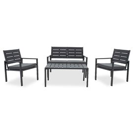 Σαλόνι κήπου Naoki σετ 4τεμ pakoworld μέταλλο μαύρο-pe γκρι