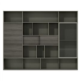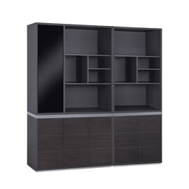 Σετ επαγγελματικής βιβλιοθήκης γραφείου από μελαμίνη σε γκρι και βέγγε απόχρωση. Διαθέτει πέντε ντουλάπια με εσωτερικό ράφι στο κάτω μέρος, ένα ντουλάπι με τζάμι στο πάνω μέρος με δύο εσωτερικά ράφια και δέκα ανοιχτούς αποθηκευτικούς χώρους. Τοποθετήστε τα βιβλία, τις εγκυκλοπαίδειες σας, ακόμα...