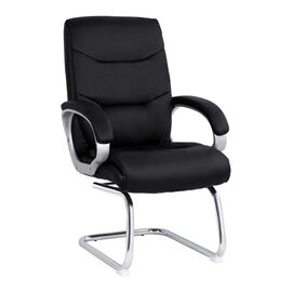 Καρέκλα επισκέπτη με μπράτσα, αναπαυτική και μεγάλης αντοχής, επενδυμένη με τεχνόδερμα υψηλής ποιότητας και ανθεκτικότητας σε μαύρη απόχρωση, με μεταλλική βάση χρωμίου. Διαστάσεις: 63x67x112 εκ. Ύψος καθίσματος: 49 εκ. Ύψος μπράτσων: 73 εκ. Διαστάσεις καθίσματος: 49x51 εκ.