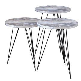Βοηθητικά τραπέζια σαλονιού Merci pakoworld σετ 3τεμ απομίμηση λευκό γκρι μαρμάρου-μαύρο