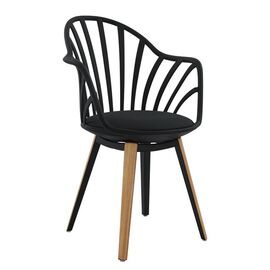 Πολυθρόνα τραπεζαρίας ANAIS, από πολυπροπυλένιο και κάθισμα από PU σε μαύρο χρώμα, πόδια εσωτερικά από μαύρο μεταλλικό σκελετό και εξωτερικά ντυμένα με ξύλινη επένδυση σε φυσική απόχρωση του ξύλου. Ταιριάζει με όλα σχεδόν τα στιλ και είναι μια πολυθρόνα σταθμός στην ιστορία του design. Ο...