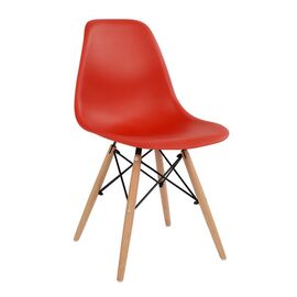 Μία μοντέρνα καρέκλα κατασκευασμένη από ξύλινο σκελετό και κάθισμα πολυπροπυλενίου σε κόκκινη απόχρωση. Τα πόδια της καρέκλας είναι από μασίφ ξύλο σε φυσική απόχρωση. Σε όποιο δωμάτιο κι αν την βάλει κανείς, θα βρει τη χρησιμότητά της. Η καρέκλα ενδείκνυται για οικιακή χρήση. Διαστάσεις: 46x50x82...