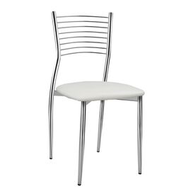Καρέκλα κουζίνας από μεταλλικό σκελετό χρωμίου και επένδυση από δερματίνη σε λευκό χρώμα. Διαστάσεις εξωτερικές: 45x55x99 εκ. Διάσταση καθίσματος καθαρό: 42x38 εκ. Διάσταση πλάτης καθαρό: 38x59 εκ. Ύψος καθίσματος: 44,5 εκ. ΠΡΟΣΟΧΗ: Το προϊόν διατίθεται αμοντάριστο σε πακέτο των τεσσάρων τεμαχίων...