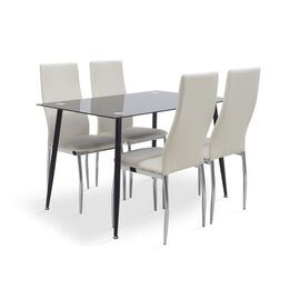 Τραπεζαρία Vincenzo σετ 5τμχ μαύρο γυαλί-κάθισμα PU λευκό 120x80x75εκ