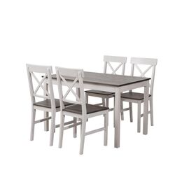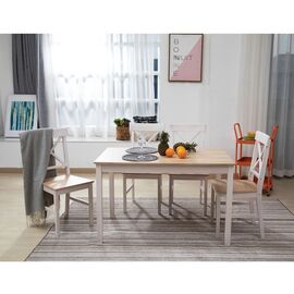 DAILY Set Τραπεζαρία Ξύλινη Σαλονιού - Κουζίνας: Τραπέζι + 4 Καρέκλες / Άσπρο - Φυσικό-Ε783,2S-Ξύλο-1τμχ- Τρ.118x74x73/Καρ.43x48x94cm