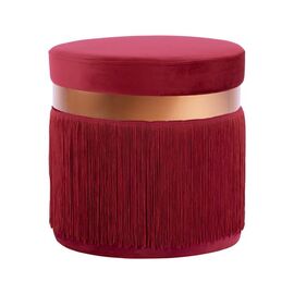 Σκαμπό από βελούδο, με κρόσσια σε απόχρωση κόκκινου Βουργουνδίας και χρυσό δαχτυλίδι. Ένα άγγιγμα κομψότητας, σε συνδυασμό με αμέτρητες χρωματικές παραλλαγές και σχήματα. Το ελαφρώς λαμπερό ύφασμα με την αδιαμφισβήτητη εμφάνιση και αίσθηση δεν είναι χωρίς λόγο μια από τις ζωντανές τάσεις κατ...