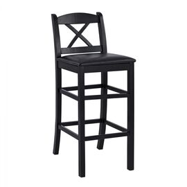 Σκαμπό εσωτερικού χώρου με ενισχυμένο σκελετό από μασίφ ξύλο οξιάς σε βέγγε απόχρωση και επενδυμένο με μαύρο τεχνόδερμα στο κάθισμα. Διαστάσεις: 41x45x110 εκ. Ύψος καθίσματος: 82 εκ. Διαστάσεις καθίσματος: 43x35 εκ.