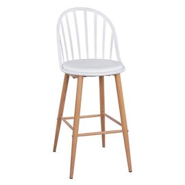 Μοντέρνο σκαμπό bar, κατασκευασμένo από σκελετό αλουμινίου σε λευκή απόχρωση, επενδυμένο με πλεκτό ενισχυμένο pe σχοινί στο κάθισμα και στην πλάτη σε μπεζ απόχρωση. Ένα σκαμπό άριστης ποιότητας και κατασκευής με χειροποίητη πλέξη στο κάθισμά του. Ιδανικό για χώρους εστίασης αλλά και για το σπίτι...