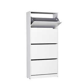 Παπουτσοθήκη από μελαμίνη άριστης ποιότητας, με τρία ντουλάπια, σε λευκή και καρυδί απόχρωση. Τέσσερα ποδαράκια στη βάση της παπουτσοθήκης για εύκολη πρόσβαση κάτω από αυτή και αποφυγή καταστροφής της από νερά και υγρασία. Διαστάσεις: 90x30x93 εκ. Ευρωπαϊκής κατασκευής και προέλευσης. Το προϊόν...