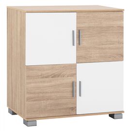 Ντουλάπι με τέσσερις πόρτες από μελαμίνη άριστης ποιότητας σε sonama και λευκή απόχρωση. Διαθέτει τέσσερις ξεχωριστούς χώρους αποθήκευσης στο εσωτερικό του. Διαστάσεις: 90x40x95 εκ. Διαστάσεις ντουλαπιών: 42,5x38x43 εκ. Απόσταση ποδιών: 87x38 εκ. Ύψος ποδιών: 5 εκ. Το προϊόν διατίθεται...