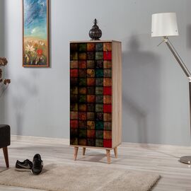 Παπουτσοθήκη-ντουλάπι σε sonama απόχρωση και πολύχρωμο σχέδιο. Κατασκευασμένη από μελαμίνη υψηλής ποιότητας πάχους 18 χιλιοστών. Διαθέτει 8 χώρους αποθήκευσης υποδημάτων. Διαστάσεις: 50x38x135 εκ. Ευρωπαϊκής κατασκευής και προέλευσης. Το προϊόν διατίθεται αμοντάριστο σε εργοστασιακή συσκευασία.