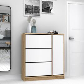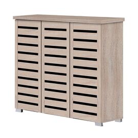 Παπουτσοθήκη μελαμίνης με 3 ανοιγόμενες πόρτες με γρίλιες σε χρώμα S.OAK και 4 ράφια για να αποθηκεύετε τα παπούτσια σας.Με όμορφο σχεδιασμό για να δημιουργήσετε μια όμορφη μεριά στον χώρο σας και να εξοικονομήσετε χώρο.