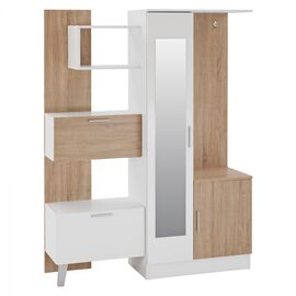 Έπιπλο εισόδου με λιτό σχεδιασμό, κατασκευασμένο από ανθεκτική μελαμίνη υψηλής ποιότητας, σε όμορφη διχρωμία από sonama και λευκή απόχρωση. Αποτελείται από ένα ντουλάπι παπουτσοθήκη, ένα μικρό συρτάρι και τέσσερα μεταλλικά άγκιστρα για κρέμαση ρούχων. Επίσης διαθέτει ένα μεγάλο καθρέπτη και ένα...