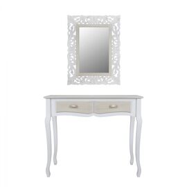 Κονσόλα με καθρέπτη "MELODY" σε κλασσικό-μοντέρνο σχεδιασμό σε λευκό-γκρι χρώμα. Ανανεώστε το χώρο σας δίνοντας μια νότα από το παρελθόν αλλά με την αισθητική του μοντέρνου και υιοθετήστε ένα διαχρονικό έπιπλο στο χώρο σας. Διαστάσεις κονσόλας: 90x40x78 εκ. Διαστάσεις καθρέπτη: 60x80 εκ. Το...