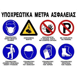 Πινακίδα σήμανσης μεταλλική "ΥΠΟΧΡΕΩΤΙΚΑ ΜΕΤΡΑ ΑΣΦΑΛΕΙΑΣ" Διαστάσεις: 50 x 66 cm Με τρύπες στις γωνίες Μεταλλική