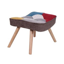 MARON Σκαμπό - Υποπόδιο, Πόδια Φυσικό, Ύφασμα Patchwork, K/D-ΕΜ143,41-Ύφασμα-1τμχ- 52x38x35cm