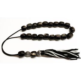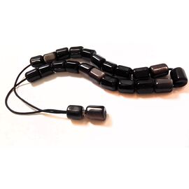 Κομπολόι από Οψιδιανό βαρελάκι μαύρο ασήμι