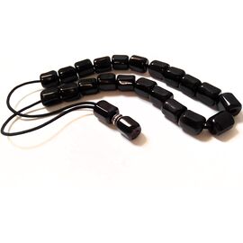 Κομπολόι από Οψιδιανό σωληνάκι μαύρο ασημί